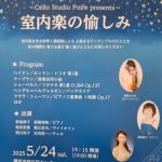 チェロのM先生のお誘いで、「室内楽の愉しみ」コンサートに参加させていただきました。 弦楽器のお知り合いは多くないので、弦楽器の方とのアンサンブルの機会はありがたく勉強させていただきました。 長津田駅すぐのみどりアートパー […]