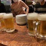 終わったあとは中華屋さんで打ち上げ!青島ビールで〜!